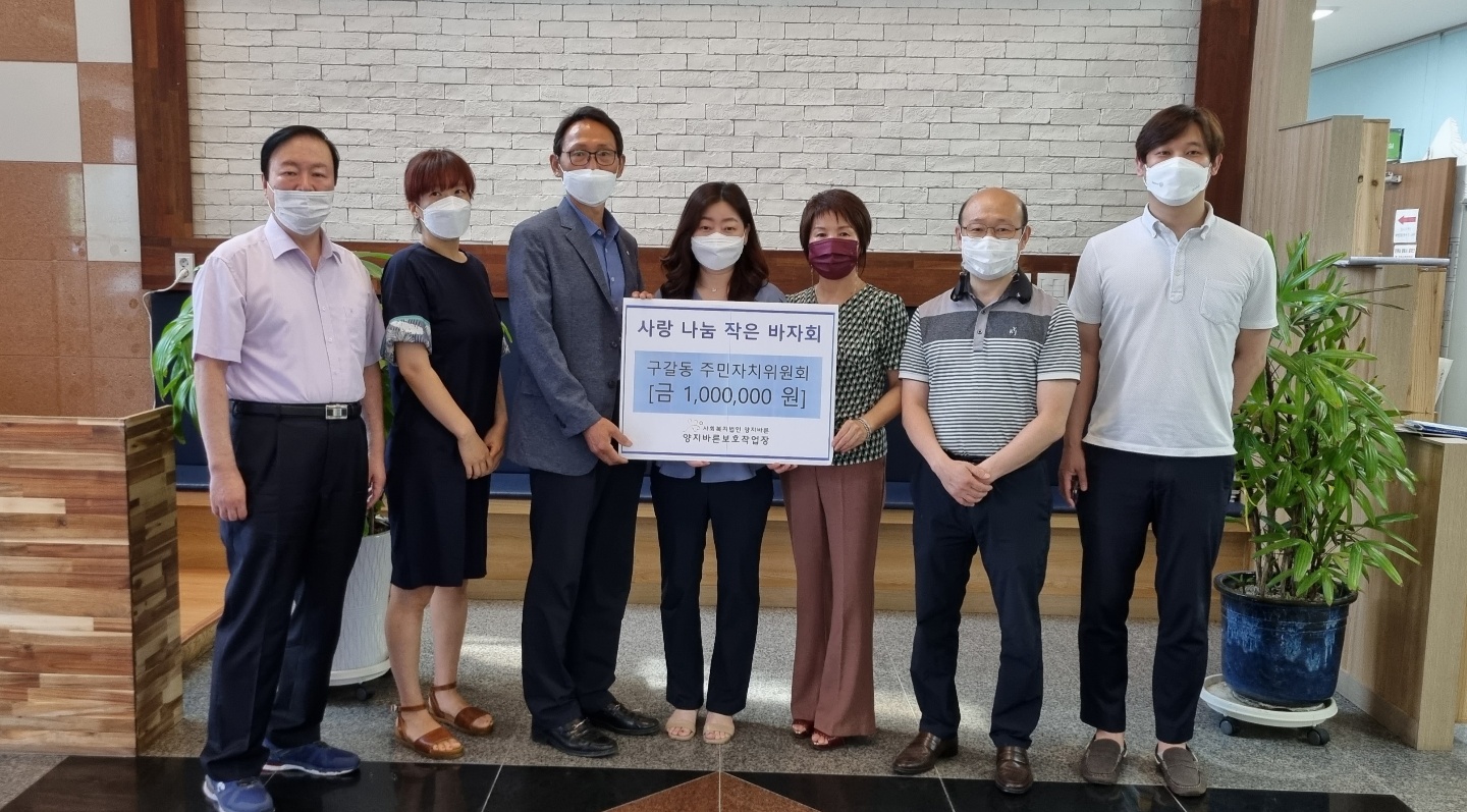 사랑나눔 바자회 수익금을 코로나 인하여 운영이 양지바른 보호작업장(장애인직업재활센터)에 기부하였습니다.